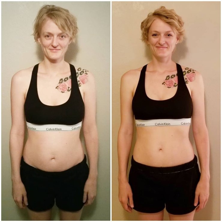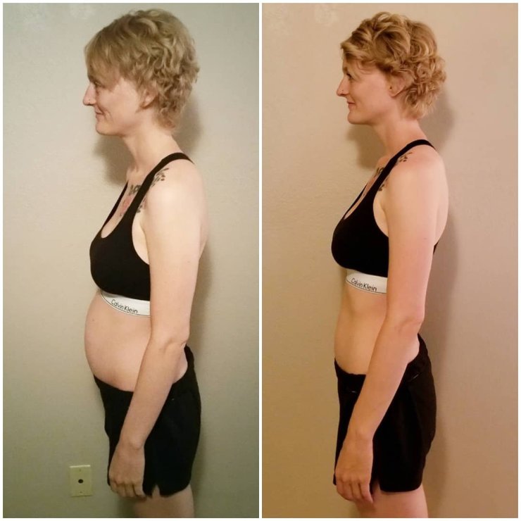 I completely lost my postpartum belly!!! I have never had a tummy this flat or toned!!! EVER!!! I am feeling SO AMAZING! I feel DEEPLY NOURISHED! My sleep and energy have improved! (Which is awesome as a co-sleeping, tandem breastfeeding, work-from-home mama!) I am now officially a MORNING PERSON! Never been able to claim that. My mental clarity and focus sharpened too! I’m able to multitask better without getting too overwhelmed and am getting more things accomplished during the day! (All while keeping a positive attitude and having patience with my kids!) I lost 5 lbs and 2 inches, which was not a goal for me, but a happy side effect! My hip pain has stayed away. And my digestion is a lot better! My skin also cleared up! But the biggest thing for me has been the loss of sugar cravings!!! Sweet treats still sound good, but I no longer crave them like I did before. I’m totally diggin BLUEBERRIES instead of M&Ms!!! Whaaa?! That’s a big dang deal!