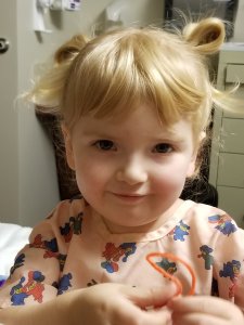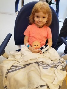 And what a big girl she was! She was very polite to all the nurses and doctors who came in to visit her beforehand. And when they wheeled her off to the procedure room, she told me, “Mama, you stay here.”